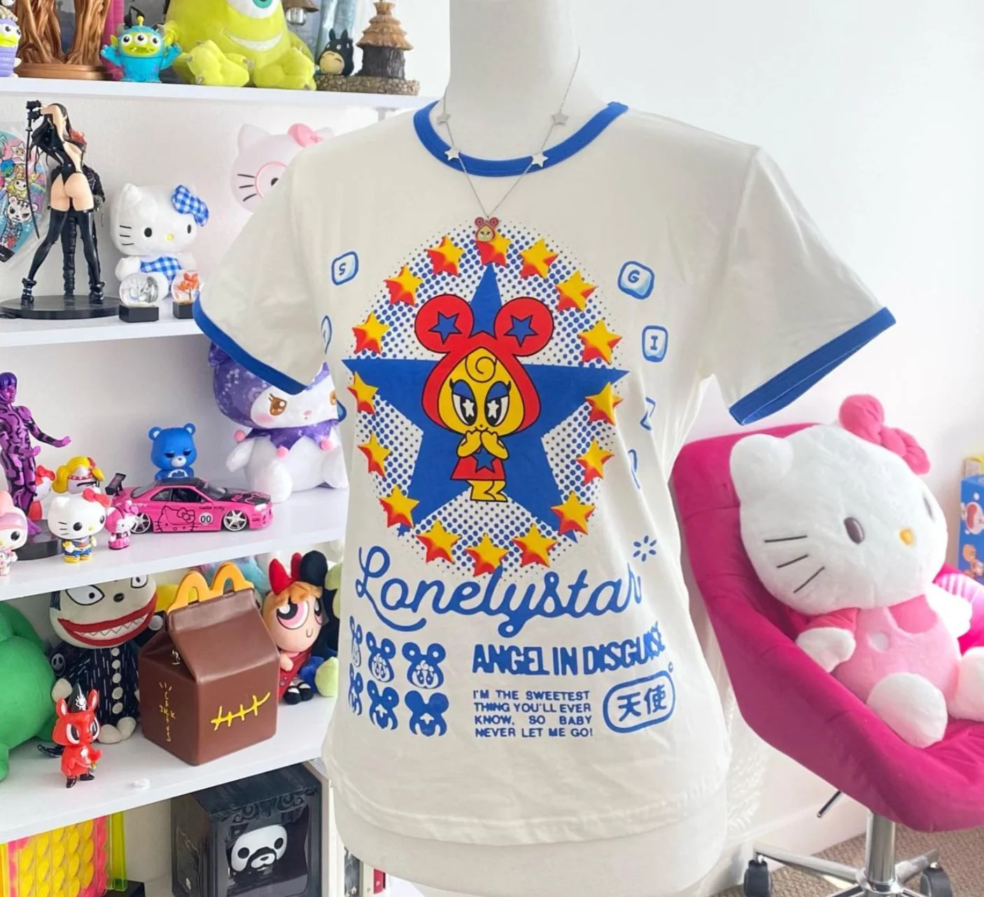 One of my crowning achievements was to help develop the mascot for one of my favorite up and coming brands Lonelystar . From ther very beginning of getting the brief i had an idea of the direction i wanted to take the charachter keping in mind an instantly recognizable silhouette & cute personality. Below this are some of my development sketches for Stargirl aswell as two poses with their color breakdowns aswell as the products that have used those graphics. Each of the producs below has sold out within the first two hours of launch, Lonelystars audience has realy grown since trhe introduction of Stargirl from 2.5K followers to now well over 10.5K and growing.